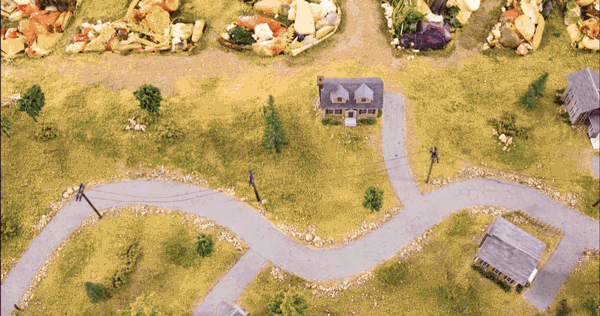 My coworker and I designed and constructed a 9’x5’ miniature set, which would be featured in the title sequence of the film. We started with a wooden base, which was covered with chicken wire and plaster, and finally detailed with train model set materials. The houses, roads, signs, fences, and telephone poles were all painstakingly handcrafted to realistically depict a typical suburban neighborhood. The titles “Wasted!” text was composed of actual rotting food, which I collected and dressed the set with, before helping shoot the final product.